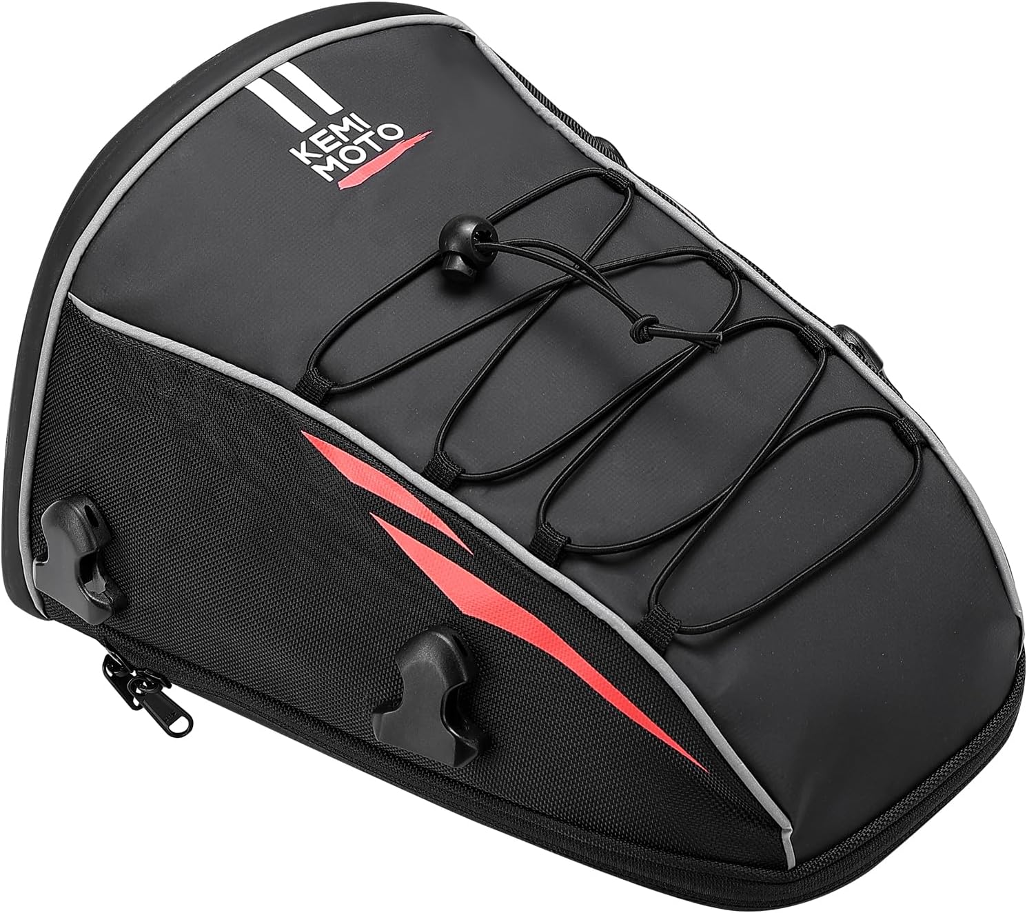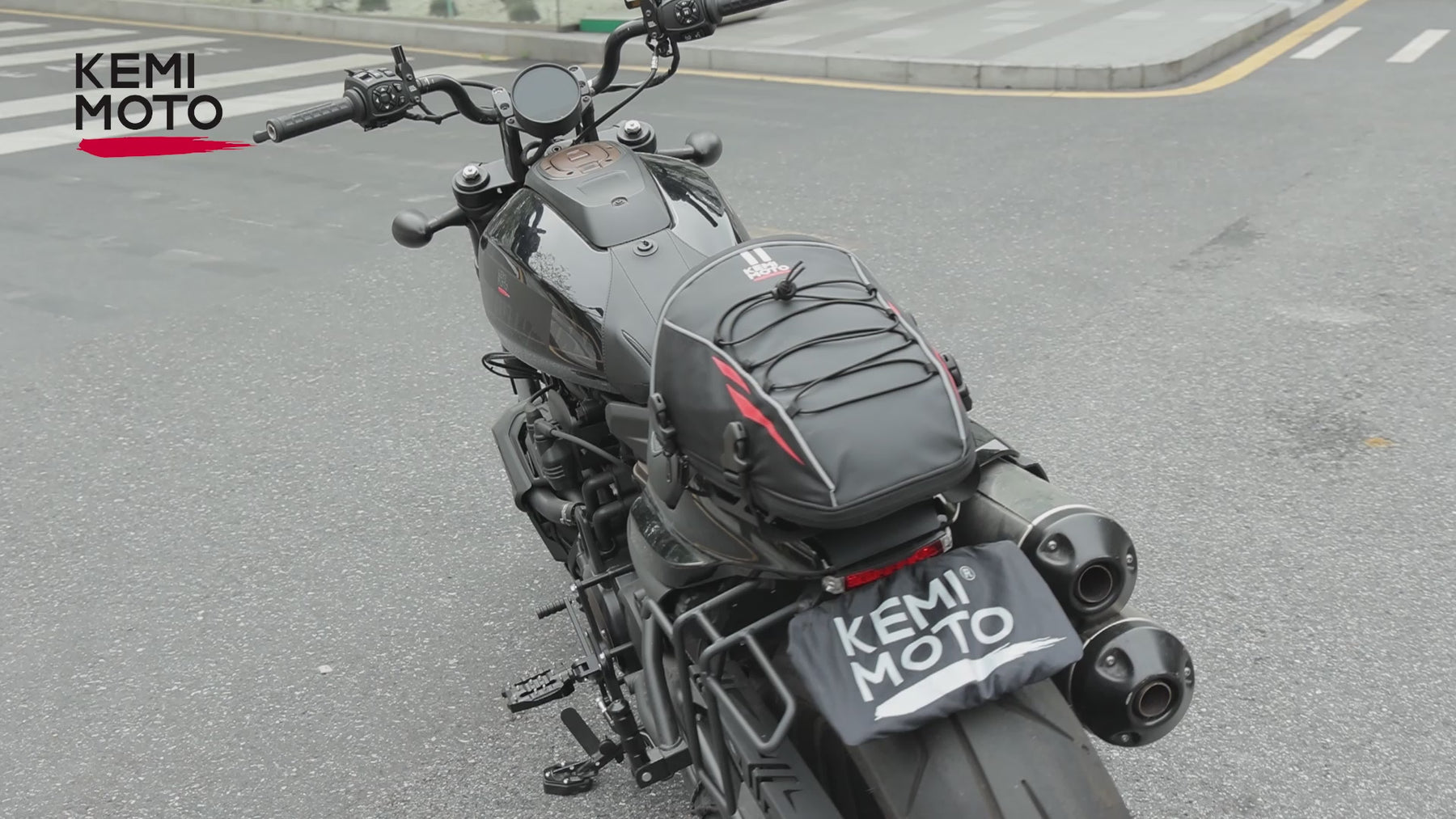スーパースポーツバイクのシートカウルをイメージした、スタイリッシュなデザインのバイク用シートバッグです。コンパクトながら実用性を備え、街乗りや日帰りツーリングに最適です。