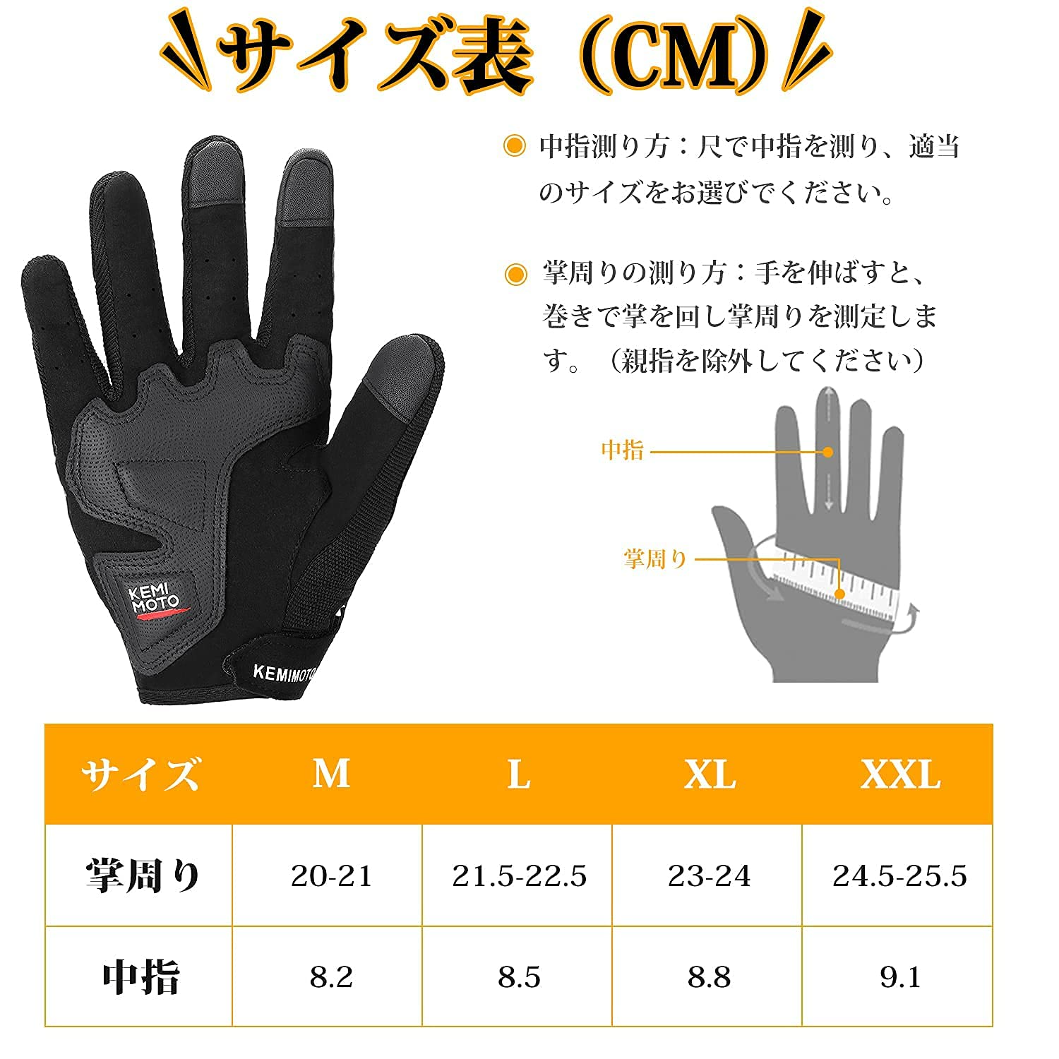 - 【タッチパネル対応】親指、人差し指及び中指の指先にタッチパネル対応の導電素材が採用され、グローブをはめたままスマホの操作ができて、わざわざ脱着する手間がかかりになりません。品質対応なので、バイクグローブについて、何か不明点・問題点がございましたら、KEMIMOTOまでお問い合わせください。